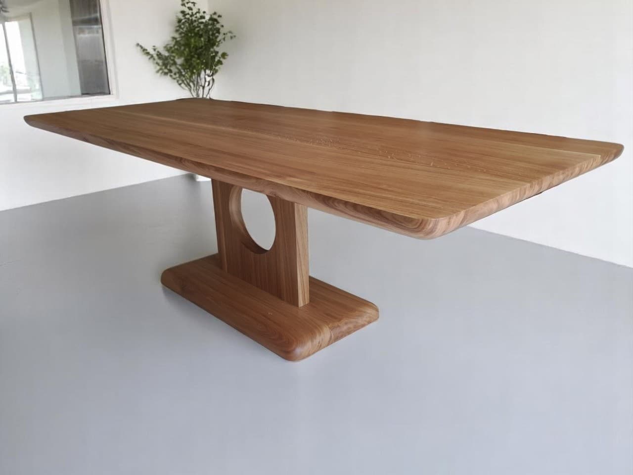 Le contraste entre la simplicité du plateau et le design sculpté du pied central témoigne d’un savoir-faire d’exception. La finition soignée met en valeur la couleur chaude du chêne, qui passe du miel doux au brun doré, créant une atmosphère chaleureuse et conviviale dans votre salle à manger.