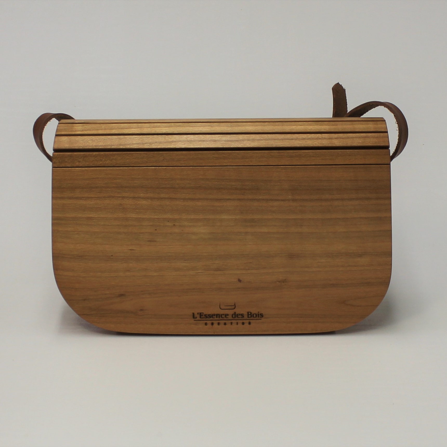 Chaque sac est le fruit d’un savoir-faire d’ébéniste appliqué à la maroquinerie. Le merisier massif, minutieusement sélectionné pour son veinage et ses nuances, est mis en forme dans notre atelier avec précision. Sa surface lisse offre un toucher délicat et des reflets subtils selon la lumière.