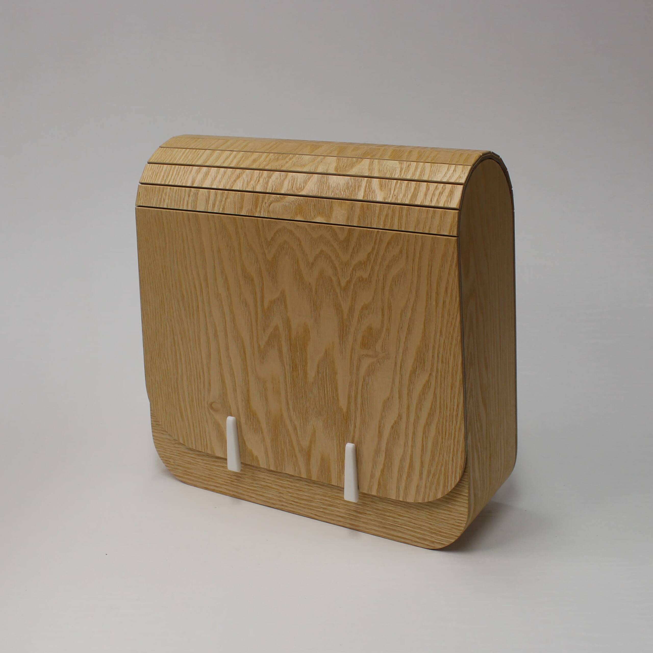 Le bois, protégé par une finition huilée, peut être ravivé si nécessaire par l’application d’une fine couche d’huile naturelle. Avec le temps, le bois et le cuir développent une patine subtile, signature d’un objet vivant et durable.