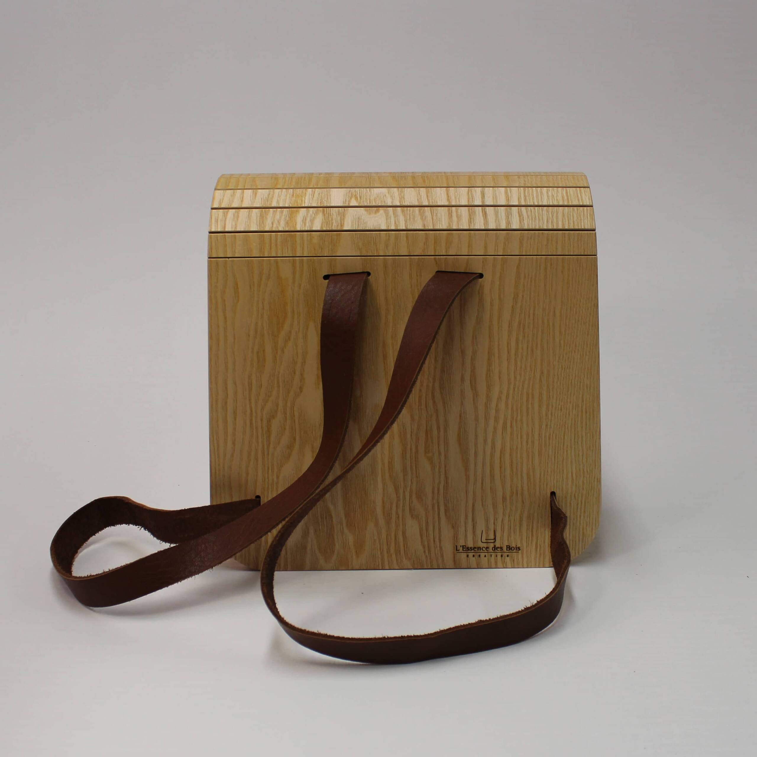 Conçu comme une création d’ébénisterie appliquée à la maroquinerie, ce sac traduit la philosophie de L’Essence des Bois : fabriquer des objets durables que l’on aime transmettre, fabriqués avec exigence et passion.