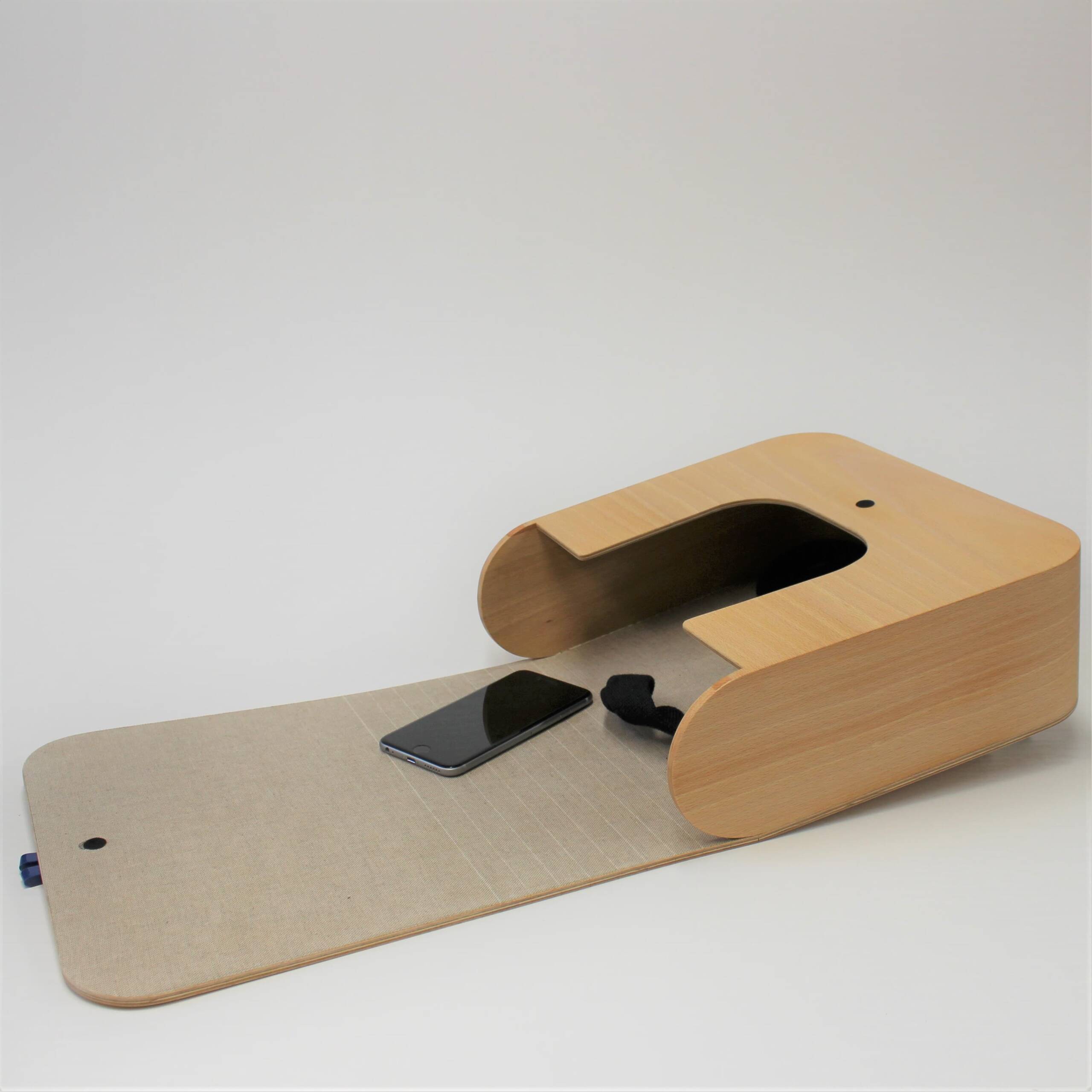 Le bois, protégé par une finition huilée, peut être ravivé si nécessaire par l’application d’une fine couche d’huile naturelle. Avec le temps, le bois et le cuir développent une patine subtile, signature d’un objet vivant et durable.